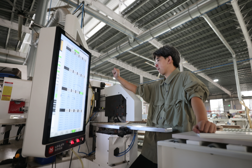 10月21日,贵港市家居产业园区内智能生产线高效运转,选板、开料、封边、打孔等工序在生产机器人精准操作下有序进行。工人们在各自岗位上忙碌作业,加紧完成定制化家居产品的生产任务,呈现出一派繁忙有序的生产景象。