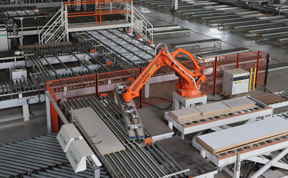 智能生产线上机械手臂正搬运板材。黄云 摄
