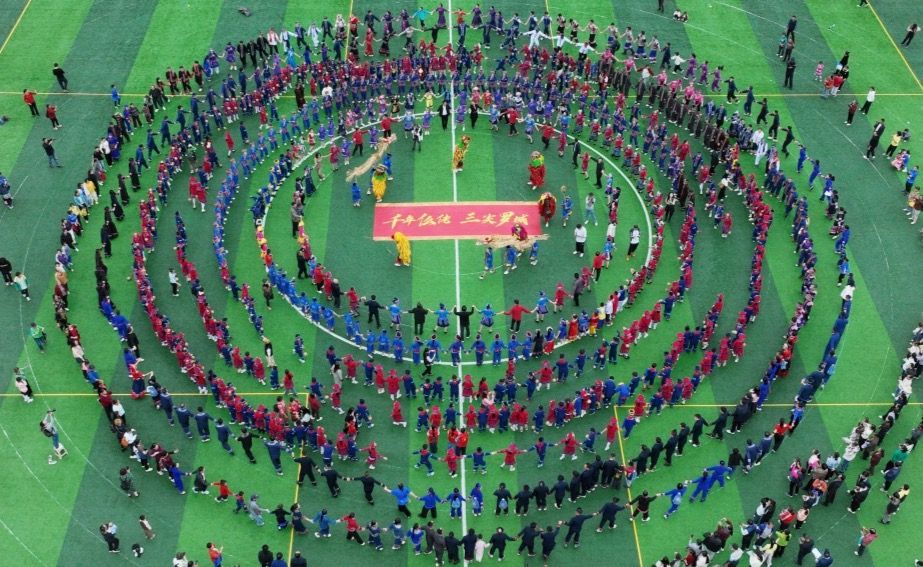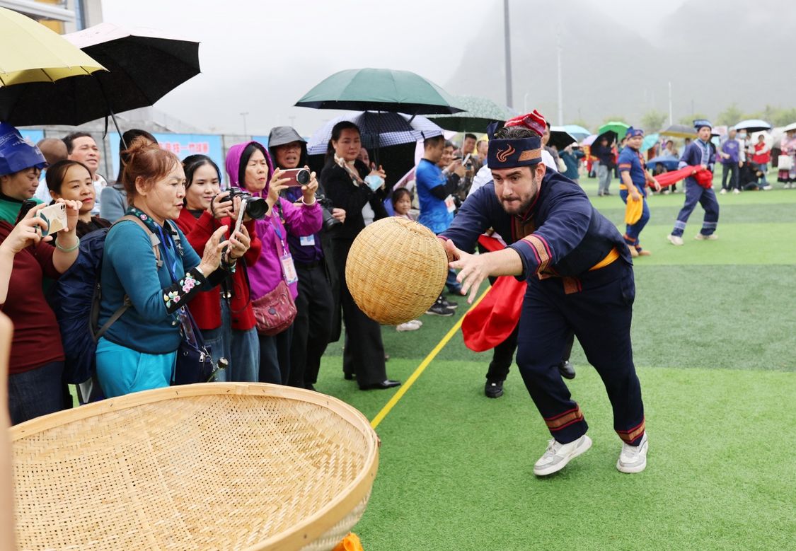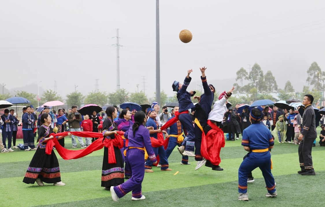 8日清晨,2025罗城依饭节·呀依健康跑在成龙湖公园开跑,2500余名跑者用脚步感受非遗魅力,开启了“文化+体育”的创新实践。同日,被誉为“仫佬族橄榄球”的抢竹球比赛在县体育中心上演,各族群众手拉手跳起“同心圆”集体舞,在欢快的舞蹈中增进了感情。