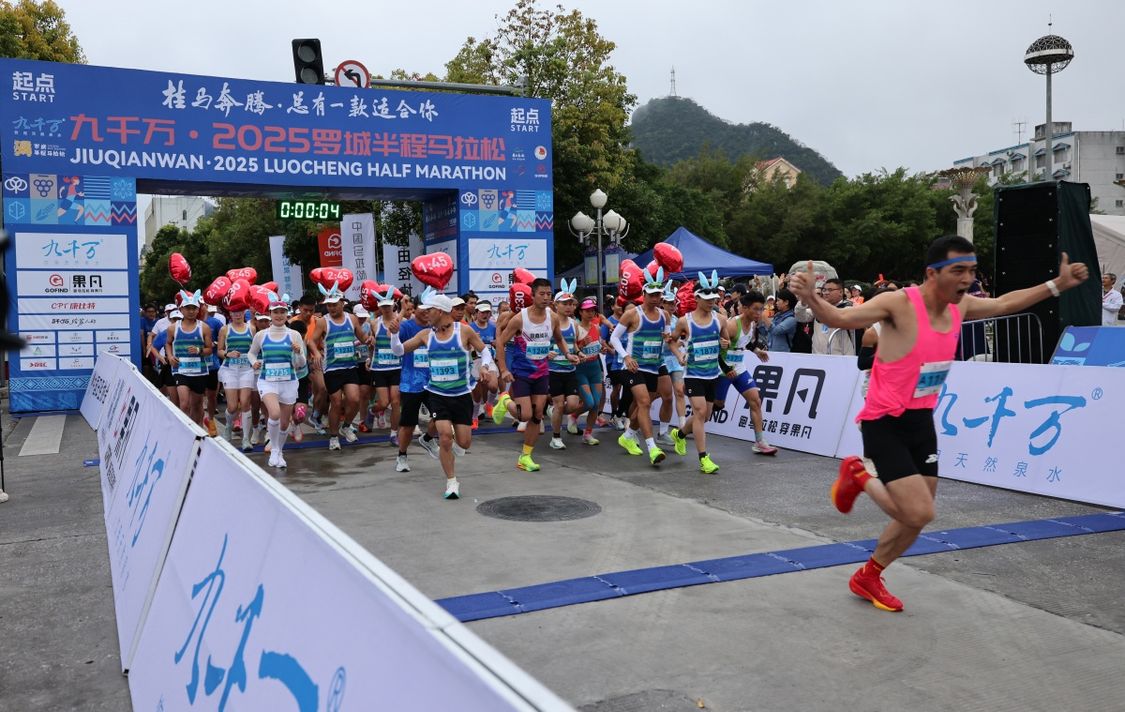 9日上午,经中国田协认证的九千万·2025罗城半程马拉松赛鸣枪开跑,来自全国的3500名选手参与角逐。赛事巧妙结合依饭节氛围,打造“最美民族风赛道”,实现了体育竞技、民族文化与生态旅游的深度融合。