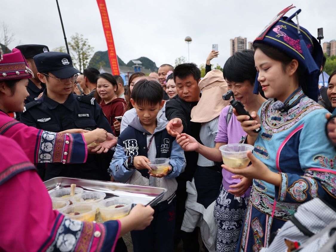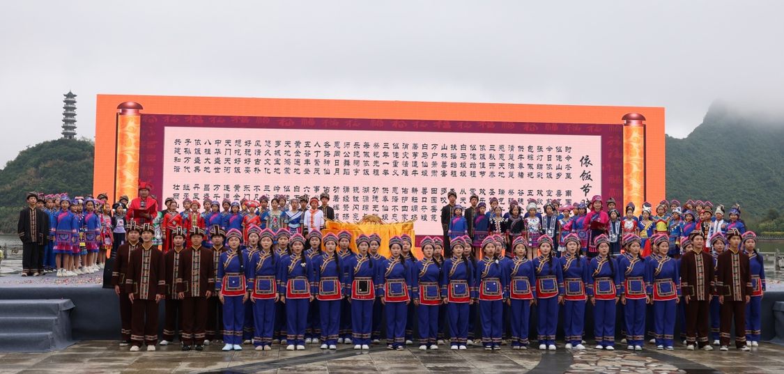 8日上午的开节仪式上,嘉宾与群众代表向仫佬族先贤敬献丰收稻穗,少年们齐声诵读《依饭赋》,《欢腾依饭节》《仫佬族古歌展示》等原生态歌舞轮番上演,集中展现了仫佬族深厚的文化底蕴和对美好生活的祈愿。