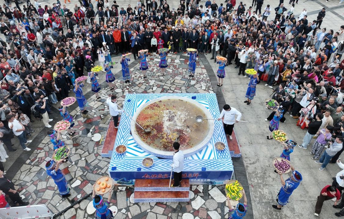 “仫佬盛宴·百膳呈祥”文旅美食嘉年华成为另一大亮点。直径5米的巨型炖锅与30米长桌宴集中展示了罗城特色美食,特色农品展销、免费小吃品尝等活动让游客深度体验了仫佬族的饮食智慧与待客之道。