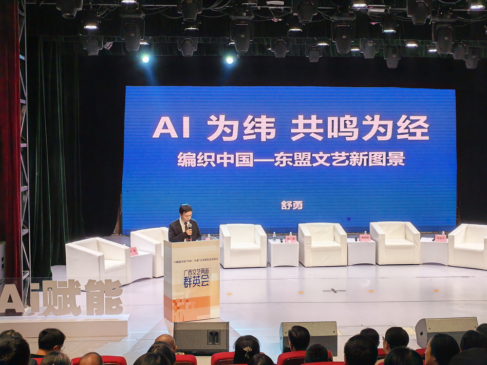 在AI赋能共创“中国—东盟”文艺新形态对话会上,全国政协委员、民进中央开明画院副院长、“中国—东盟AI艺术创作研究中心”顾问专家舒勇作主旨报告,与来自各领域的专家学者共同探讨人工智能技术在推动跨文化艺术创新中的角色、机遇与挑战。