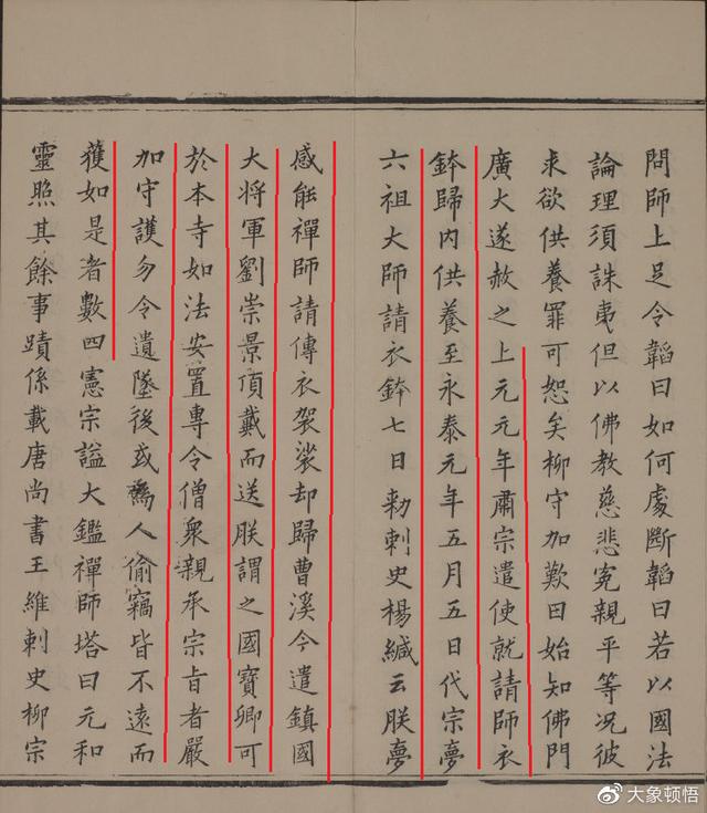 《传法正宗记》卷第六载:“震旦第三十三祖慧能尊者传。......上元中肃宗慕尊者之道。尝诏取其所传衣钵。就内瞻礼。肃宗崩代宗嗣位。永泰元年五月之五日。遂梦尊者请还其衣钵。天子益敬其法。七日即诏使臣持还曹溪。”