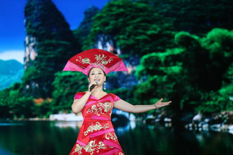 藏族独唱演员阿旺•洛桑顿珠带来了《雪域圣地》《最美的歌儿唱给妈妈》;哈尼族歌唱家杨倩琳演唱了《花腰女》《打歌》;藏族青年歌唱家扎西顿珠独唱《川藏路》《阳光》,阿洪尼克男声独唱《新疆民歌联唱》《欢乐的帕米尔》……歌声时而悠扬动听,深情婉转,时而激情澎湃,雄浑洒脱,观众随着歌声在神圣的雪域高原、大美的撒拉故里、秀丽的山水风光中神游;彝人制造带来的《看见了》《美丽姑娘》,尽显浓郁的民族风情及蓬勃的时代精神;从恭城瑶乡走出来的女歌手李雪演唱的《桂美大地》和壮族女歌手李卫红演唱的《多谢了》《瑶家妹仔要出嫁》,句句情真意切,唱进了瑶乡人民的心坎里,精彩的演出博得现场观众阵阵掌声。