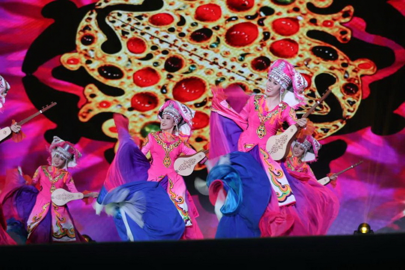 蒙古族舞蹈《骏马归来》、达斡尔族舞蹈《打歌打舞》、哈尼族舞蹈《山谷廻响》、柯尔克孜族舞蹈《欢乐的库木孜》展现了不同民族的风情文化。旋律起伏中,自治县成立30年来的洪波巨澜与风云壮阔通过现场大屏幕呈现在人们眼前,现场弥漫着庄严而又欢快的节日气氛。整个慰问演出包括男声独唱、女声独唱、舞蹈等13个节目,演员阵容强大,一曲曲响彻云端的美妙歌声,一支支激动人心的精彩舞蹈,博得现场掌声不断;绚丽的舞台效果,优质的环绕音响,将现场气氛不断推向高潮。最后,慰问演出在集体舞《鱼跃龙门步步高》的欢快旋律中圆满结束。