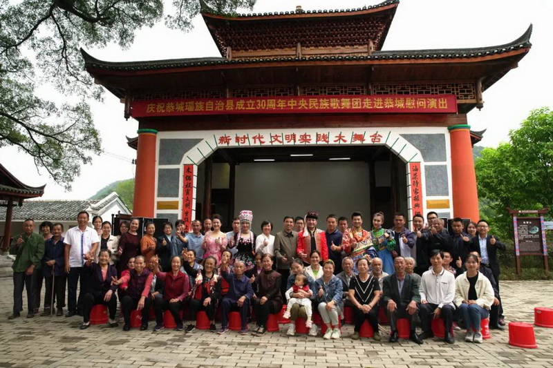 中央民族歌舞团成立于1952年9月,是我国唯一的国家级少数民族艺术表演团体,以继承、繁荣、发展少数民族文化艺术为宗旨,足迹踏遍祖国大江南北、村村寨寨,把绚丽多彩的文化艺术奉献给各族人民,受到各族人民的喜爱。除了25日晚的专场慰问演出外,24日上午,中央民族歌舞团副团长韩新波带领一支10余人文艺小分队来到恭城有名的月柿之乡——莲花镇,为当地父老乡亲慰问演出。