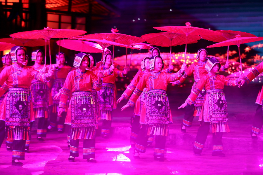2月15日,中国首部侗族风情大型实景演出《坐妹》在三江侗族自治县侗乡鸟巢剧院开启新春首演。演员们倾情演绎侗乡原汁原味的歌舞、耕织、服饰、婚恋等缤纷风情,吸引众多游客前往观赏,让八方游客乐享侗乡浓郁独特的文化魅力。
