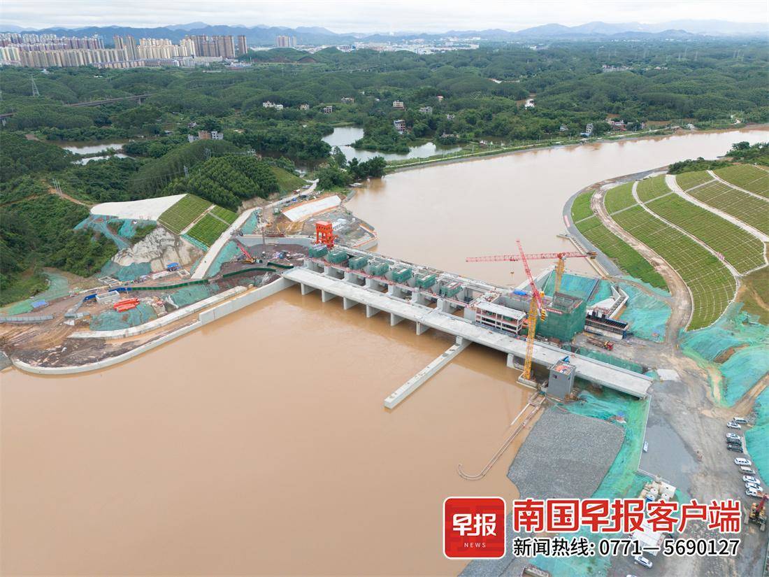 为调节水位落差等,平陆运河沿线设有马道、企石、青年3个梯级枢纽并设置省水船闸,以保障通航。6月5日上午,钦州笼罩在雨幕之中,但在平陆运河马道枢纽项目的建设现场,建设者们依然在热火朝天地进行施工作业。