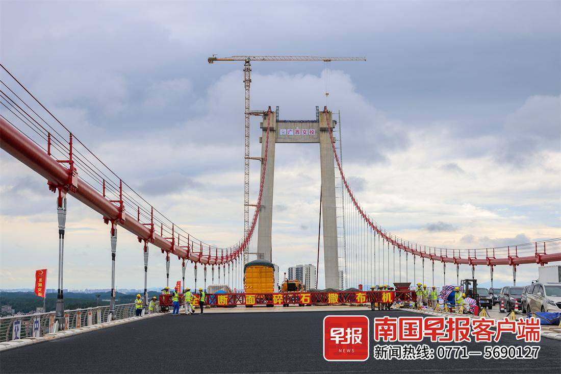 广西交投集团龙门大桥项目指挥部副指挥长何锦章介绍,目前正在进行钢桥面铺装及全线路面结构施工、附属结构安装和防腐涂装施工等工作,预计将在今年年底建成通车。龙门大桥是广西滨海公路的咽喉,建成通车后,防城港与钦州港两地的通行时间将由原来的1.5小时缩短至25分钟左右,钦北防将更紧密地联系在一起。