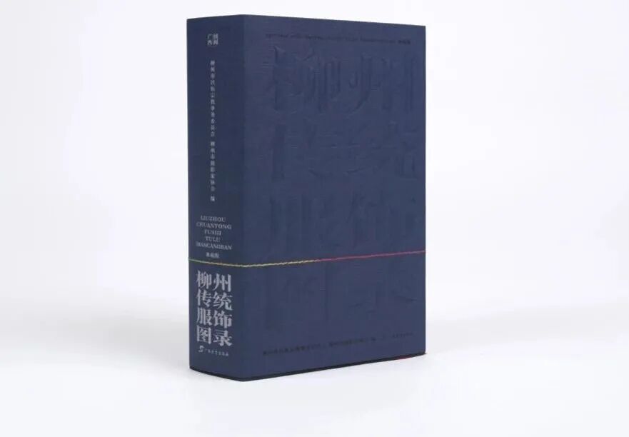 《柳州传统服饰图录:典藏版》是《柳州传统服饰图录》一书的装帧升级版,该书首次系统梳理柳州汉、壮、苗、侗、瑶等世居民族的传统服饰文化。为了将这份厚重的文化遗产以最美的形态呈现,编委会与设计团队反复沟通,在书籍的细节上倾注了大量心血。图书封面设计灵感源自服饰本身的纹样,以柳州世居民族服饰常用的靛蓝色为底,以五彩丝线拦腰,用人工逐一装订。书页通过特殊的印刷工艺和纸张选择,力求在五彩斑斓的平面书页上,立体地再现刺绣的纹案、丝线的光泽和银饰的质感。这本书充分体现出编者对民族文化的深刻理解与敬意,从封面材质的选择、内页纸张的渐变,到版式空间的留白、图文节奏的把控上,力图让读者“触摸”到历史,经历一场跨越时空的视觉与触觉对话。