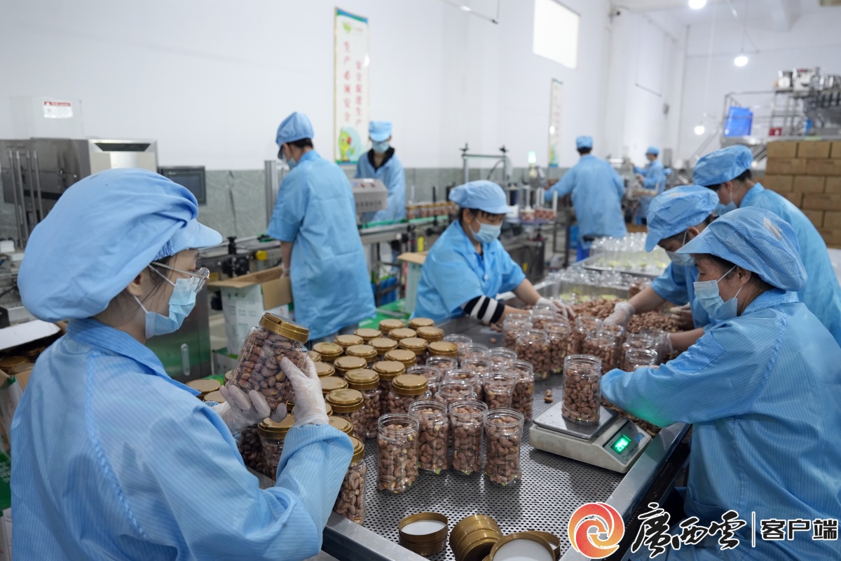 边民可以将互市贸易进口的商品销售给落地加工企业。图为东兴市一家落地加工企业工人在加工坚果。记者 刘冬莲 摄