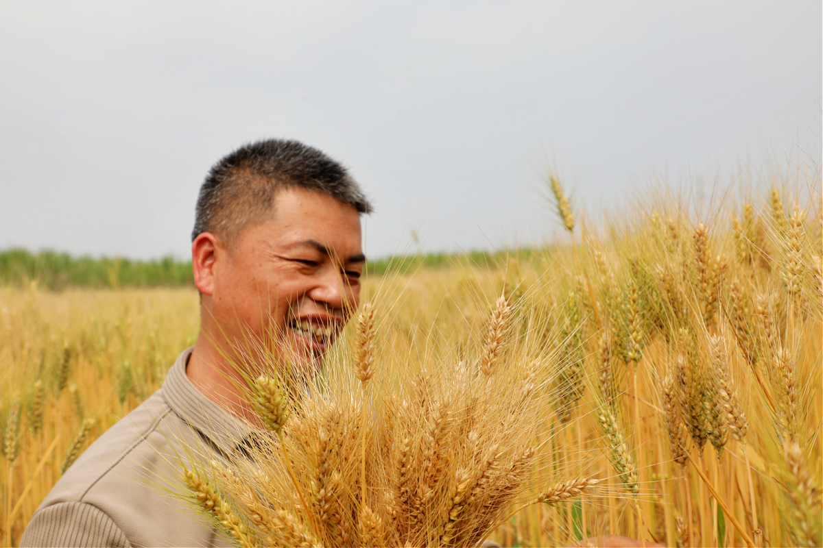 陈国松看着丰收的麦子,脸上笑开了花。朱春婷 麦雷 蒙雪月 摄