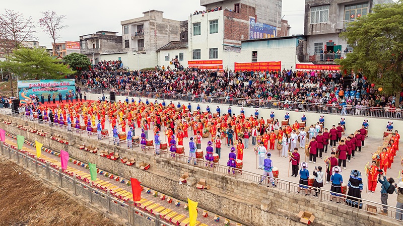 扶绥县“龙乡龙韵舞龙头”民俗活动开幕式现场,鼓乐齐鸣、各族群众欢聚一堂。吴特寺摄