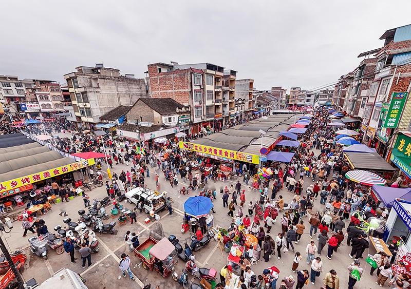 龙头乡烤猪美食街人头攒动,节庆烟火气与文旅消费活力双向迸发。吴特寺摄