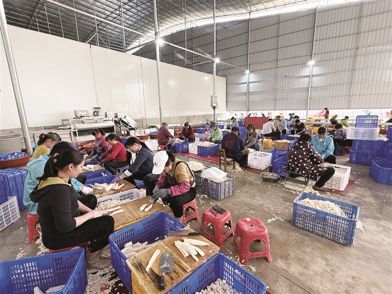 在众多规上农产品加工企业中,龙头企业的带动作用看得见摸得着。柳州市农业农村局乡村产业发展科相关负责人介绍,城中区环江村土地平整、气候适宜,之所以发展水晶木薯种植,正是基于它经过精深加工后巨大的增值空间。