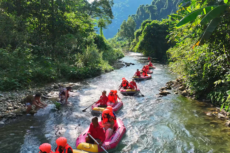 5月1日至5月4日,景区将聚焦年轻消费群体,创新推出“安全助教员”护漂项目。该项目围绕安全护航与趣味互动打造,专业护漂团队在重点水域进行流动守护与趣味互动,在保障漂流安全的同时,以年轻化、沉浸式服务为游客带来新奇体验,让惊险刺激的峡谷漂流兼具安全感与趣味性。