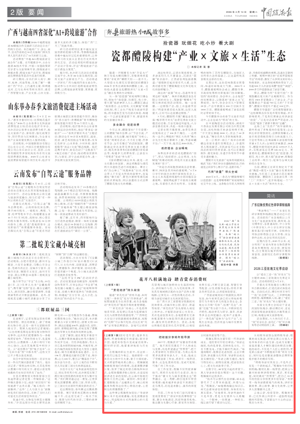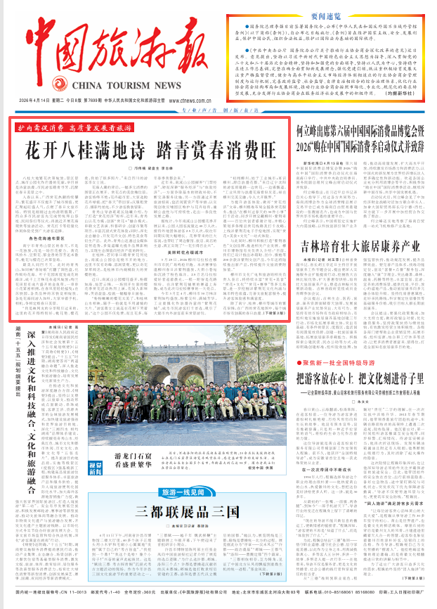 4月14日,《中国旅游报》头版发布文章《花开八桂满地诗 踏青赏春消费旺》,全文如下: