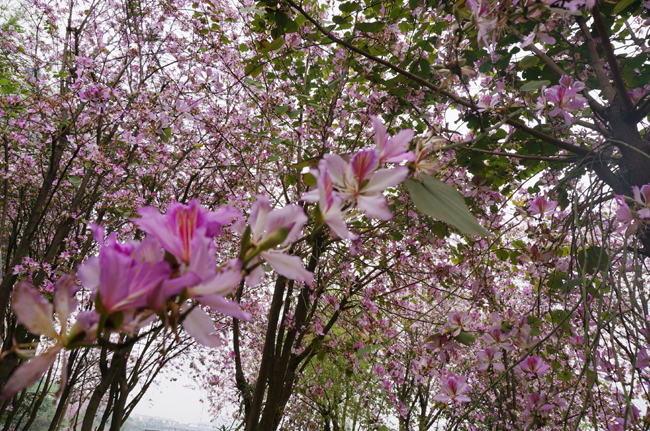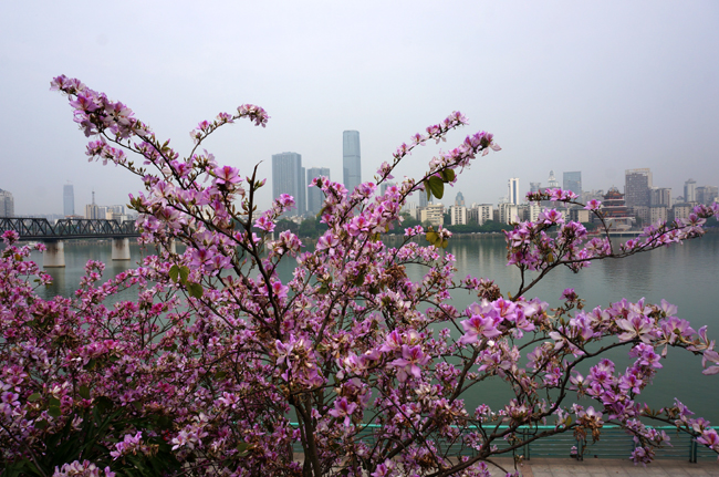 柳州城区广植紫荆花,近期花开,满城惊艳,有爱好者航拍视频发至网上,很是壮观,于是有感,为诗一首以颂之。