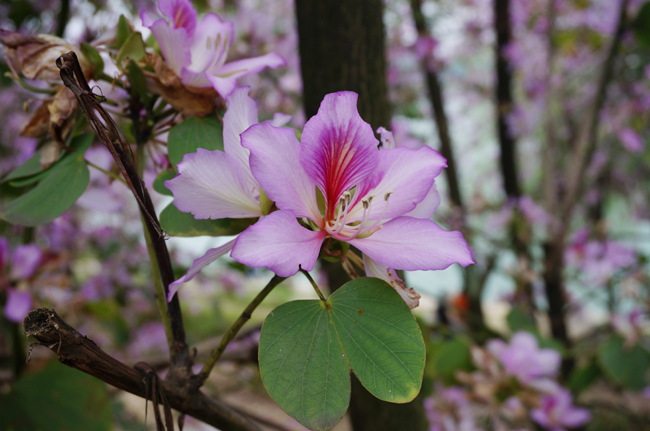 紫荆花开耀龙城(注),英落成雨漫地新;