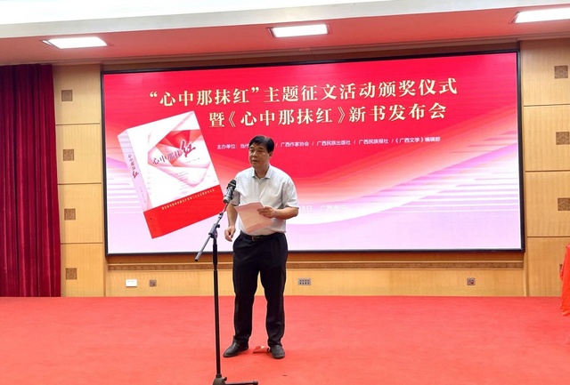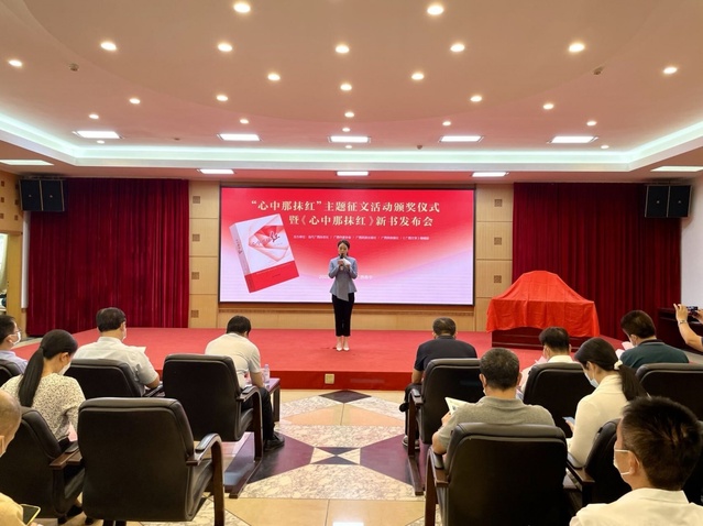 红色是一种信仰,是一种精神,是一种力量,是一面旗帜,更是一种特殊的传承。‘生在新中国,长在红旗下’,每个人心中都有一抹红。”《心中那抹红》主编,当代广西杂志社社长、总编辑刘波说。10月18日下午,“心中那抹红”主题征文活动颁奖仪式暨《心中那抹红》新书发布会在广西民族出版社举行。有关方面负责人和获奖代表及媒体记者50多人参加活动。