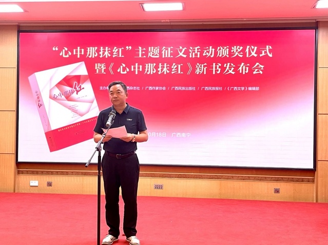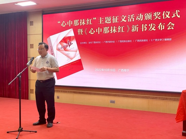 本次活动由当代广西杂志社、广西作家协会、广西民族出版社、广西民族报社、《广西文学》编辑部联合主办,并由广西民族出版社推出主题征文获奖作品选集《心中那抹红》。
