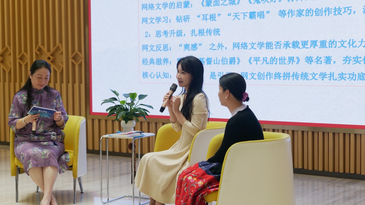 韦雪桃(中)分享《彩韵缘》创作故事。何善权 摄