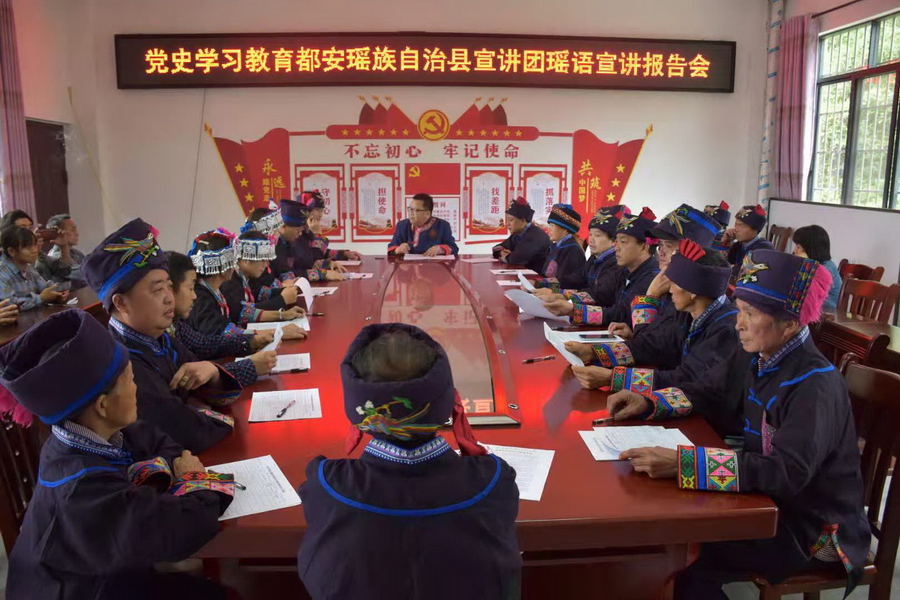 隆福乡葛家村是瑶族同胞聚居村,在葛家村,瑶族党员、群众代表聆听了县宣讲团成员、(广西)全区理论宣讲先进个人蒙英姿用瑶语进行的党史学习宣讲报告会,深刻领会党的百年历史和中国共产党在广西、在河池、在都安的伟大革命历程。现场党员、群众代表不时报以热烈掌声,通过以群众听得懂的语言和鲜活的宣讲,让党史学习教育入脑入心。