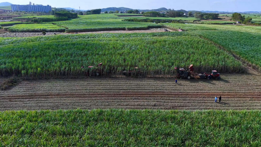 据了解,象州县糖料蔗种植面积达到21.97万亩,目前全县投入各种甘蔗收割设备40多台,4个糖料蔗除杂中心开展作业服务,为保障了糖料蔗收榨任务的顺利进行,助力乡村振兴提供农机保障。