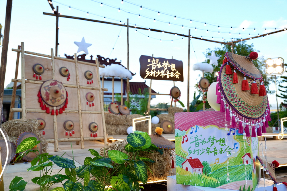 金秋的毛南山乡,稻浪翻涌着清甜,远处动车“呜呜”驶过田埂,把金色稻穗晃得更欢;村口老铜鼓的纹样映着暖阳,连风里都裹着乡土的香。10月16日傍晚,河池市环江毛南族自治县下南乡中心小学的操场上,20顶花竹帽悬在舞台上空,6顶傩面纹样投影在背景板上,广西电视台《我是接班人》“音”为梦想摄制组携手师生,把4天非遗研学、音乐课堂的收获,酿成一场满是“毛南味儿”的乡村少年音乐会。近千名村民搬着小板凳围坐,童声、笑声、掌声混着稻花香,在山谷间绕了一圈又一圈。