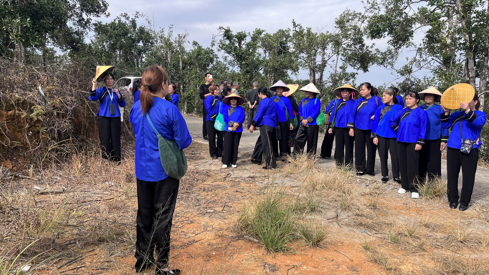 活动首站,村民们乘坐车辆前往八角丰产改造示范基地。在郁郁葱葱的八角林间,龙州县八角乡四平村支书黄海燕化身为专业讲师,现场讲解八角嫁接改良、截顶促枝等关键种植技术,并耐心解答村民们在病虫害防治、科学施肥等方面遇到的实际问题。这场别开生面的“林间课堂”,以产业技能培训为桥梁,让各族群众在学习交流中共同进步,为乡村振兴的产业发展筑牢根基。