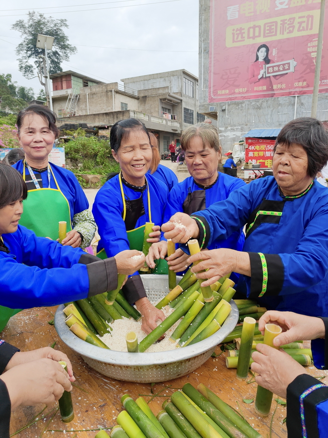 “竹筒饭香·孝暖重阳”民俗体验环节温情满满。村民们分工协作,共同制作美味的竹筒饭。孩子们将热气腾腾的饭菜小心翼翼地送到老人手中,随后晚辈们为长辈捶背揉肩,用实际行动弘扬敬老爱老的传统美德,进一步增进了邻里之间的深厚情谊。