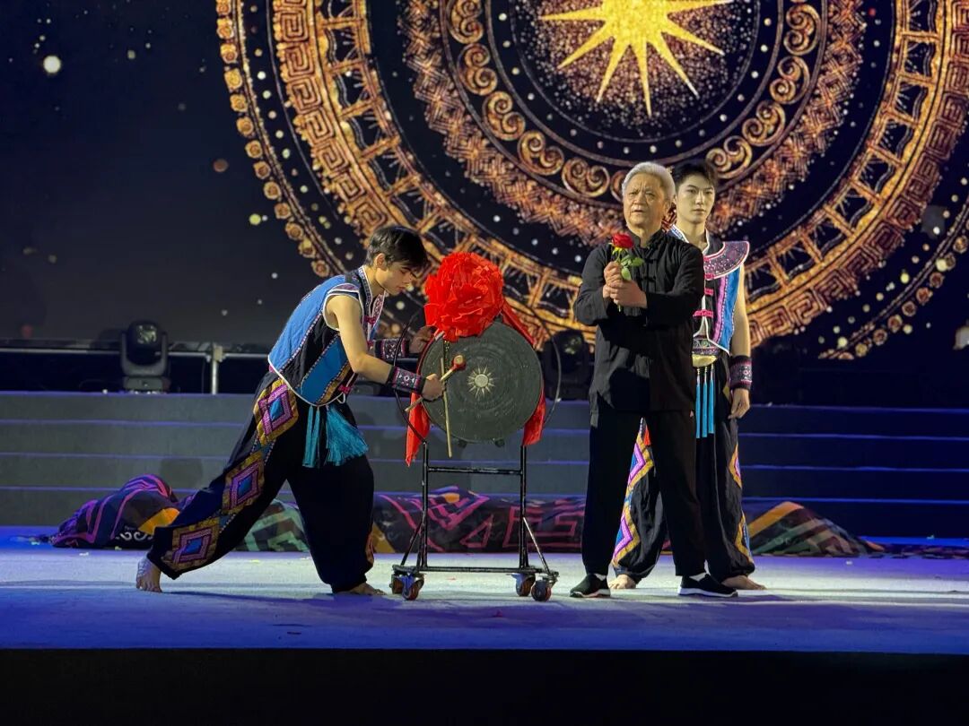 当晚,节目《传承·地狮人》率先登场,正式拉开闭幕式晚会的帷幕。随后,颁发了群众文艺会演、非遗展演、山歌擂台赛一等奖以及优秀组织奖。紧接着,小组唱《金城有座风流桥》、非遗展示《莫一大王·壮家稻谷兵》、广场舞《最炫民族风》、歌曲《祖国啊我想对你说》等轮番献艺,民族舞蹈荟萃《龙舞年丰》《瑶祝》《守仓人》《竹·鼓》更是以灵动舞姿展现民族神韵,晚会在歌舞《美丽神奇的地方》中落下帷幕。