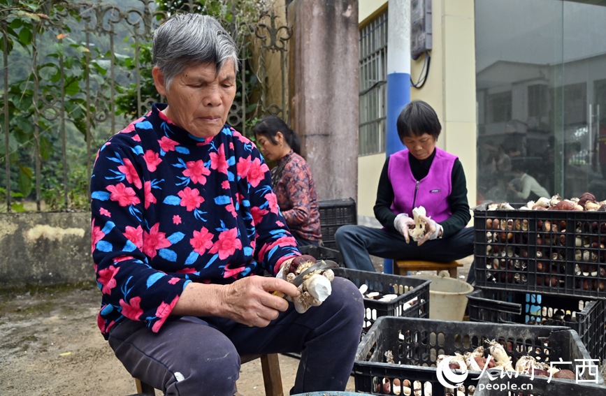 1月20日,记者走进巴兰村赤松茸种植基地,掀开覆盖在田垄上的稻草看到,饱满肥硕的赤松茸簇拥生长,空气中弥漫着菌香与泥土的清新。“我们利用冬闲的稻田,把废弃的甘蔗秆、玉米秆、桑树枝等打碎,配上少许中药渣,做成天然基质。”基地负责人、巴兰村驻村第一书记陈作文介绍,“这种仿野生种植方式全程不施化肥农药,产出的赤松茸是真正的绿色有机食品。”