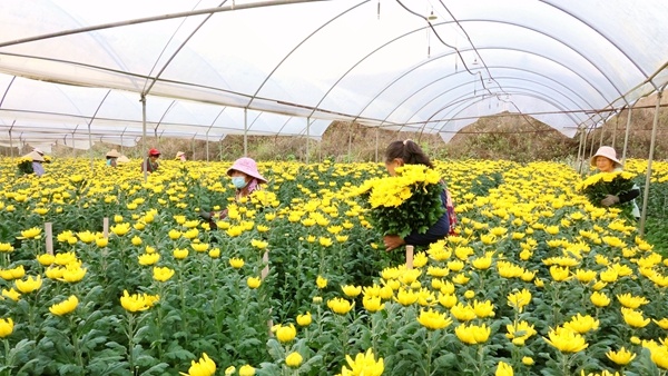 近年来,罗播乡立足资源禀赋,将鲜切花产业作为助力乡村振兴、带动群众增收的特色主导产业,全乡规划鲜切花种植总面积3500亩,目前已种植1750亩,主要种植高品质菊花,年平均亩产鲜切花达7.5万支,产业规模化、标准化发展初具规模。