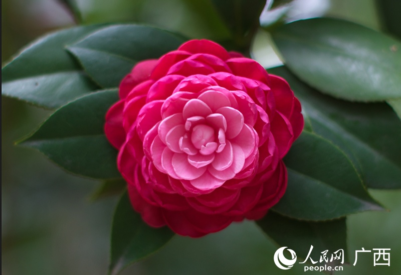 金花茶公园内,赤丹开得饱满。人民网记者 雷琦竣摄
