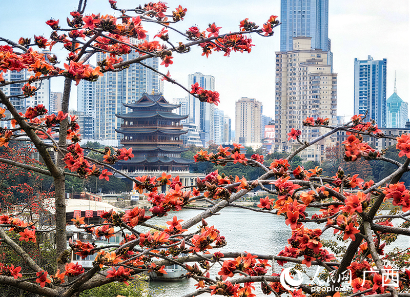 邕江两岸,红木棉花开正艳。人民网记者 雷琦竣摄