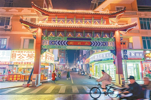 近年来,宜州区对九街十八巷的30多处门楼、古迹进行复建、修缮,为街巷挂上崭新的“身份牌”,并对基础设施进行全面改造。以“非遗+文创+餐饮”打造业态集群,引入餐饮老店、特色手艺与商贸零售,建起非物质文化遗产体验馆和文创中心,让古街既有古韵,更有生机。