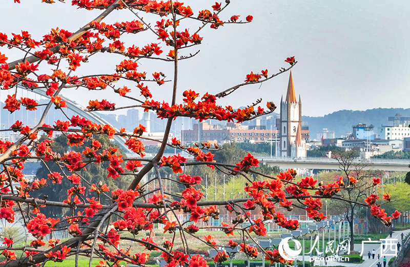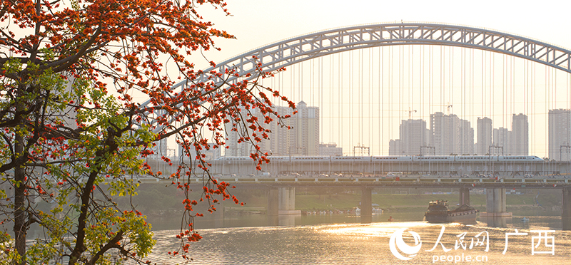 木棉花开邕江两岸。人民网记者 雷琦竣摄