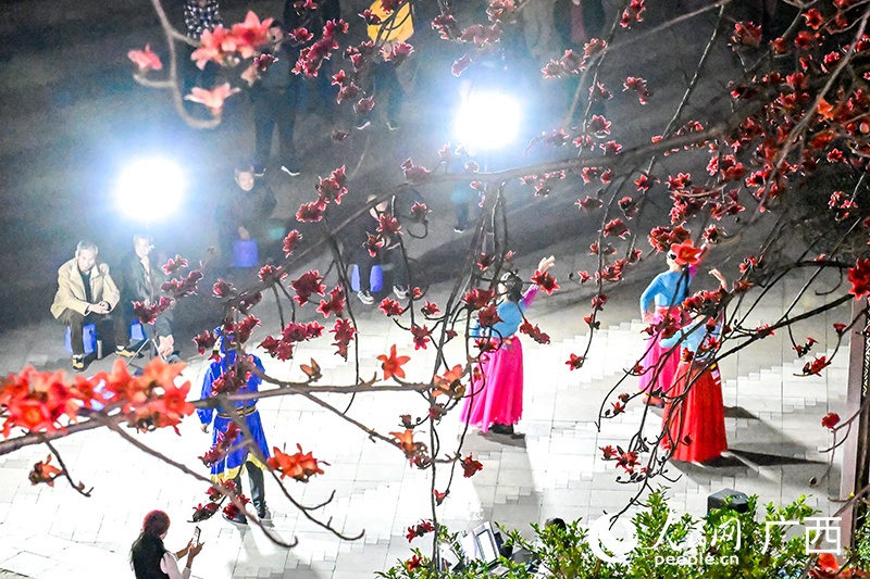 市民在木棉树下载歌载舞。人民网记者 雷琦竣摄