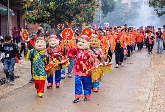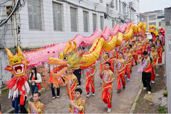 活动在庄重的还炮仪式中启幕,原炮头率队携“福牌”巡游,舞龙、醒狮、八音、花婆等方阵随行,途经多处乡土地标,村民夹道迎接,尽显民俗底蕴。当天下午,抢炮活动在田垌开阔地激情上演,将现场气氛推向最高潮。队员们或飞身扑抢,凭借出色的弹跳力在空中截获“福环”;或默契配合,以假动作迷惑对手,为队友创造突围空间。最终,村民孙植康成功抢得“福环”,经核验、敬酒后正式成为新炮头,在龙狮、八音队护送下携“福牌”返家,沿途鞭炮相迎,福运相传。