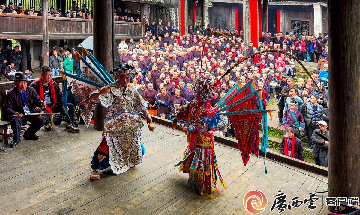 上午9时许,各支队伍前往三王宫,庄重的祭祀仪式如期举行,祈愿风调雨顺、五谷丰登。随后,非遗展演轮番上演,桂剧《芙蓉岭》、侗戏《龙女在人间》等经典剧目登台,民族舞蹈与非遗走秀精彩纷呈,悠扬的侗歌声响彻村寨。