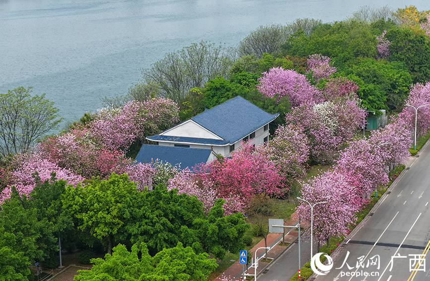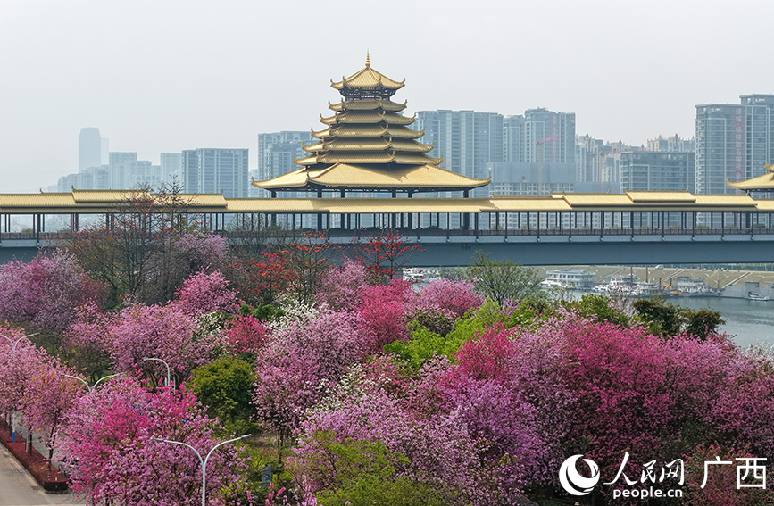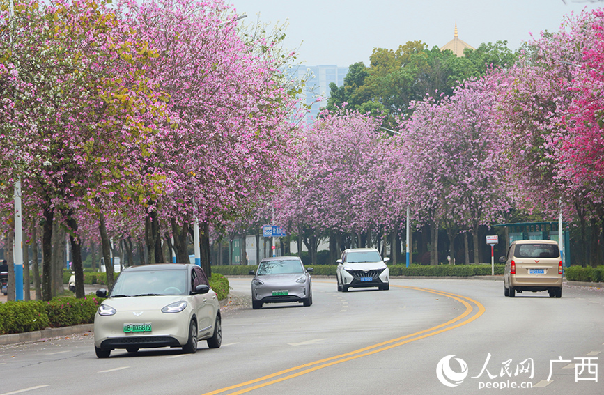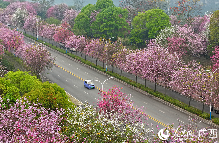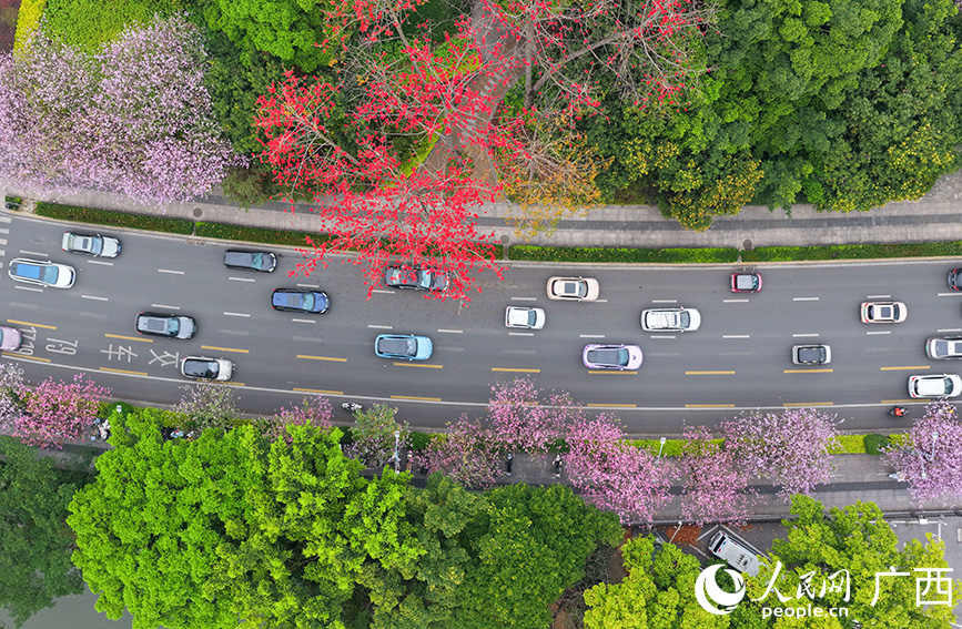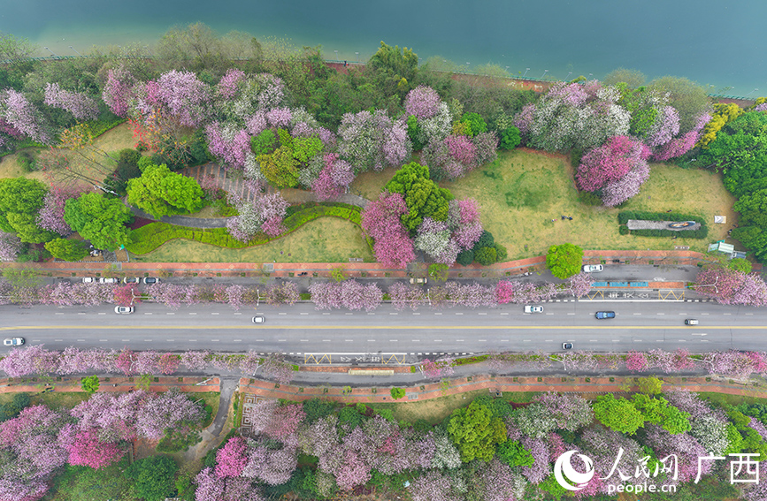 柳州环江滨水大道紫荆花盛开,美景如画。人民网记者 付华周摄