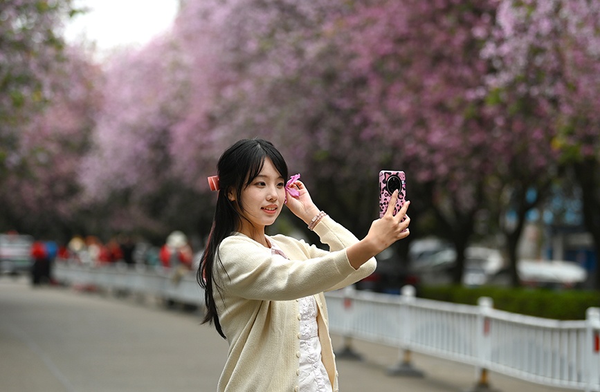 凭借螺蛳粉走红的柳州市,如今又以紫荆花这一“网红IP”吸引着天南海北的目光。这座工业城市因满城繁花而兼具山水灵秀与花城浪漫,成为春日里独特的幸福缩影。无论是驾车穿行于花道,还是徜徉于公园小径,人们都能与满城春色不期而遇,感受“人在画中游、画在景中走”的诗意盛景。
