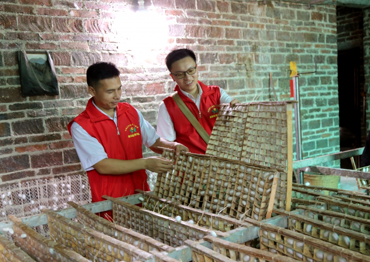 工作人员到城关镇一农户家了解蚕茧生产状况