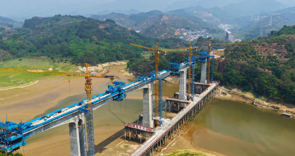 黄百铁路那蒙澄碧河特大桥施工现场