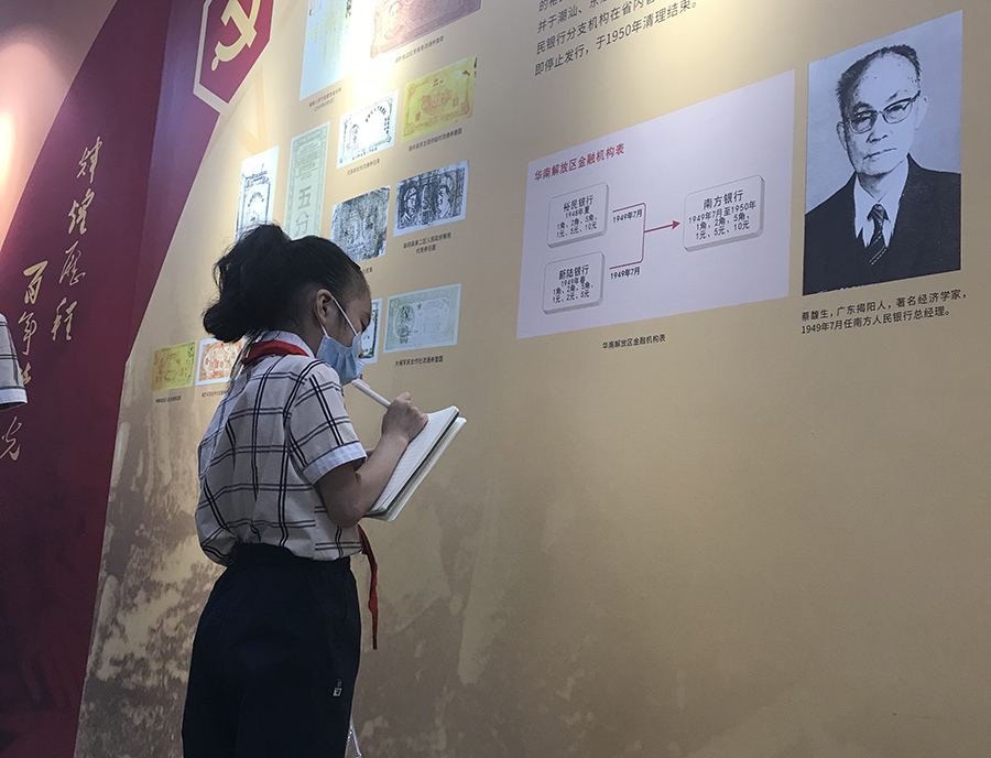 “通过参观学习,我知道了中国人民银行是怎么建立的,人民币是怎么来的。这些红色货币都是经历过战火洗礼的货币,我们应该铭记革命先辈的光辉业绩,热爱祖国,努力学习,长大后为家乡贡献自己的力量。”少先队员宋予恒说。