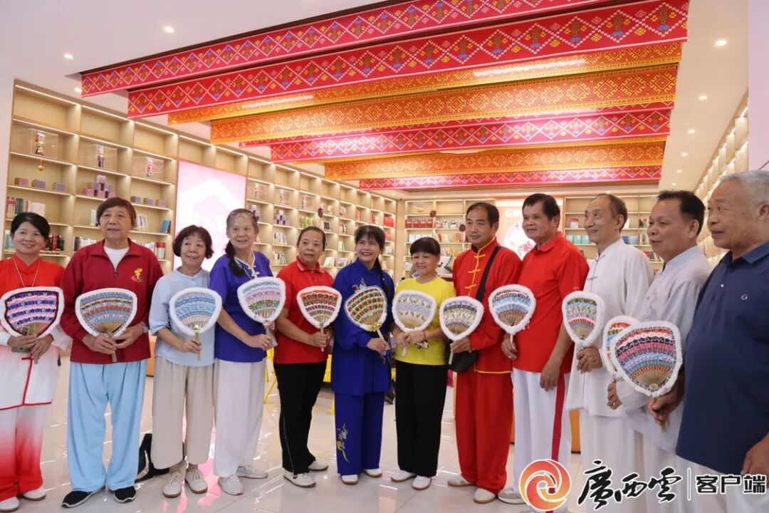 南宁市江南区沛鸿社区各族群众制作壮锦团扇。广西云-广西日报记者 苏华 摄