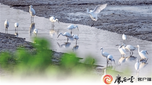 不少鸟儿来到广西山口红树林生态国家级自然保护区浅水处觅食,湿地景致美如画。来源:广西云-广西日报(资料图)