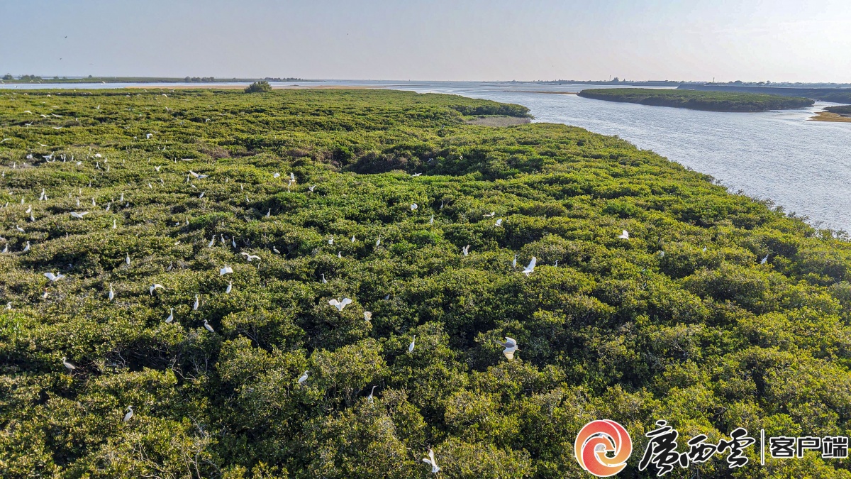 北海市合浦县沙岗镇七星岛的一片红树林,成群的白鹭在栖息觅食,成为一道靓丽风景线。林启波 摄(资料图)